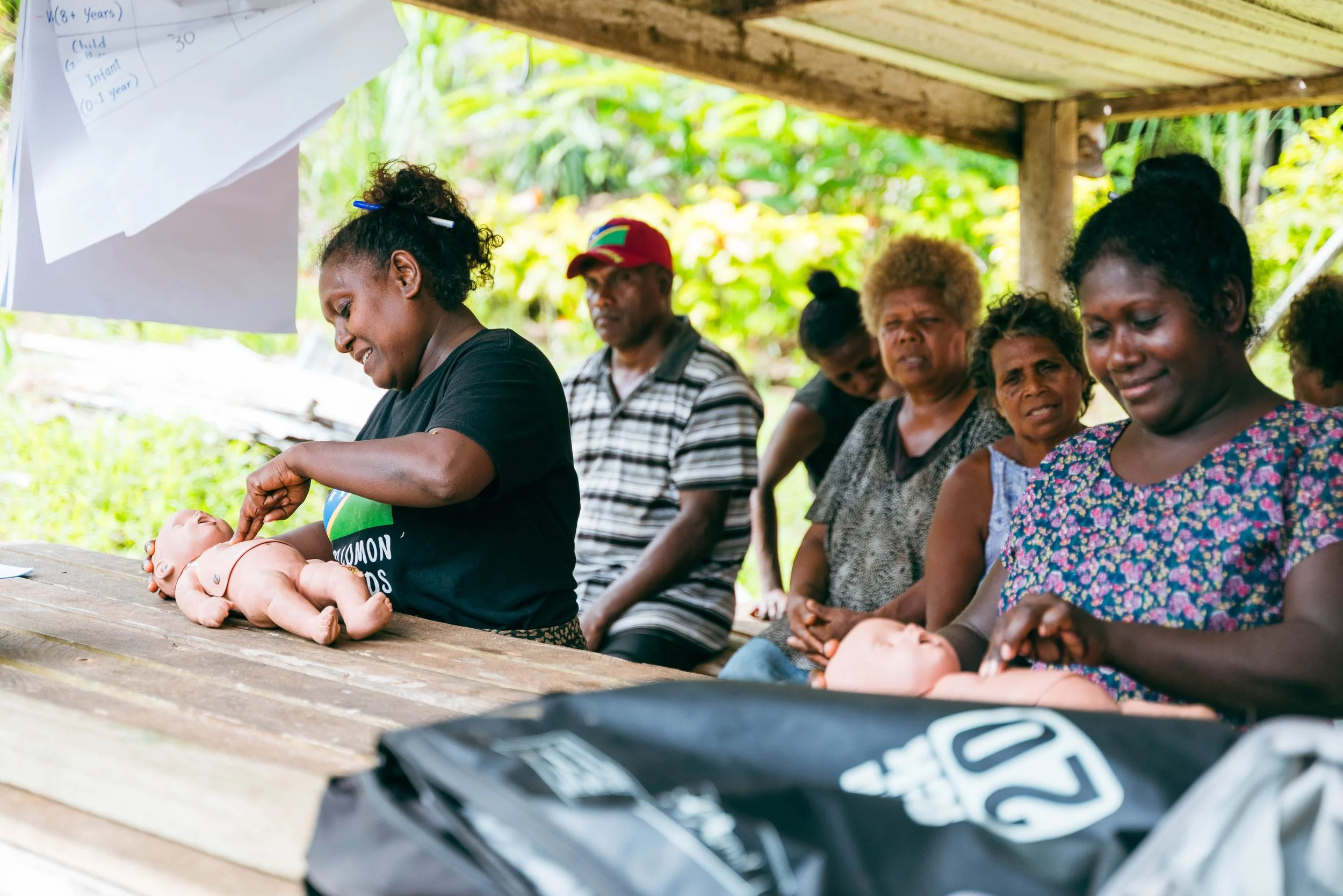 Community members learned how to administer first aid to infants. IMAGE: Selric Faisi/on behalf of Plan International in the Solomon Islands