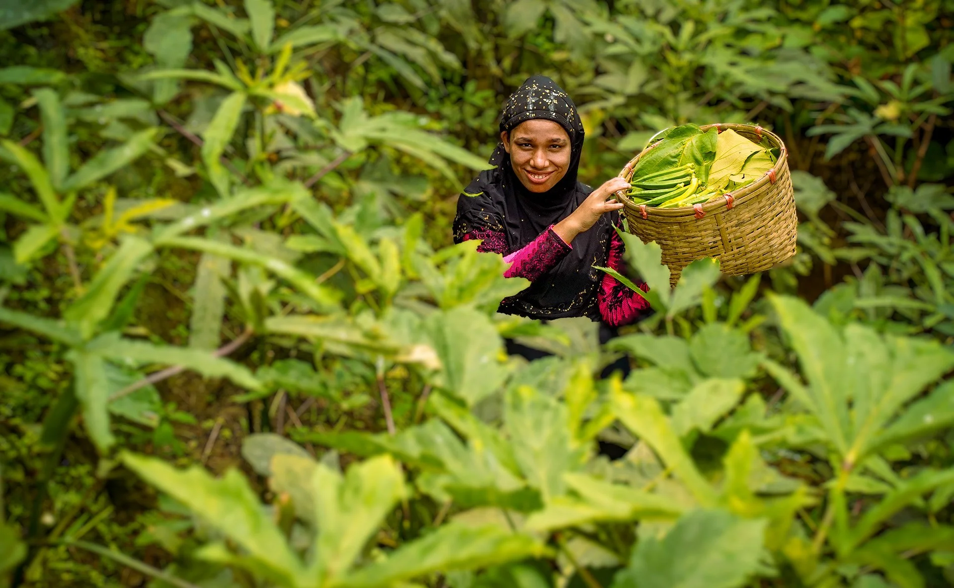 Above: 19-year-old Rajia is now known as a ‘green queen’ in her community for her thriving vegetable plots. Photo: Mahbub Alam/Plan International Bangladesh
