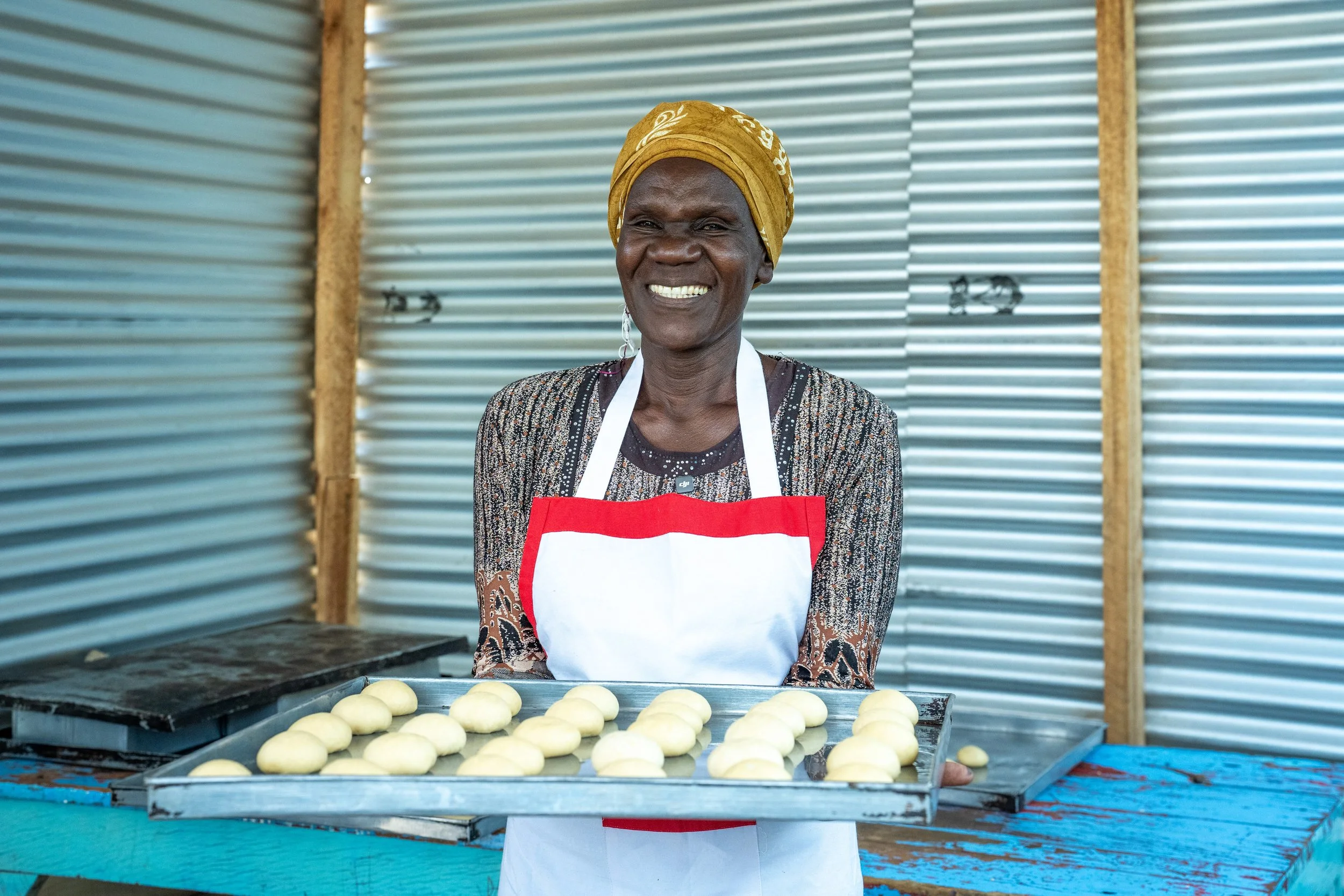 When Oxfam and local partner TUPADO (Turkana Pastoralists Development Organisation) began looking for promising community-led businesses to support the establishment of Village Savings and Loans Associations (VSLAs) through the Australian Humanitarian Partnership drought and flood response in Kenya, the timing was perfect for Agnes and the group. They had just begun restructuring, and had been trying their hand at establishing a baking business on and off since 2023.