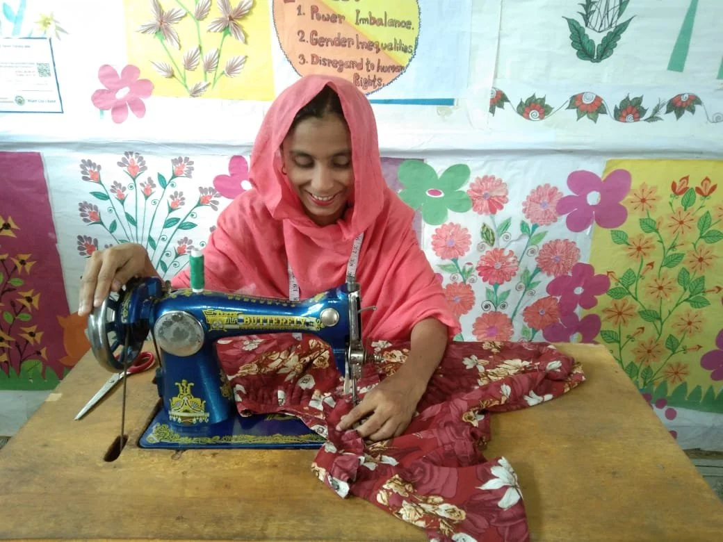 Above: Tailoring and sewing training helped Salma* find a creative outlet and learn new skills. Photo: Sazia Afrin/Mukti Cox’s Bazar